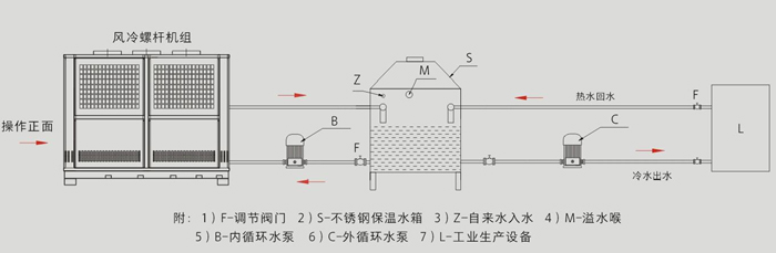 4、風(fēng)冷系列無需配置冷卻水塔及冷卻水泵,安裝簡單,移動(dòng)方便,適合生產(chǎn)場地比較緊缺的環(huán)境使用;